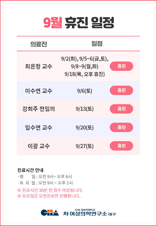 25년 9월 휴진 일정 안내