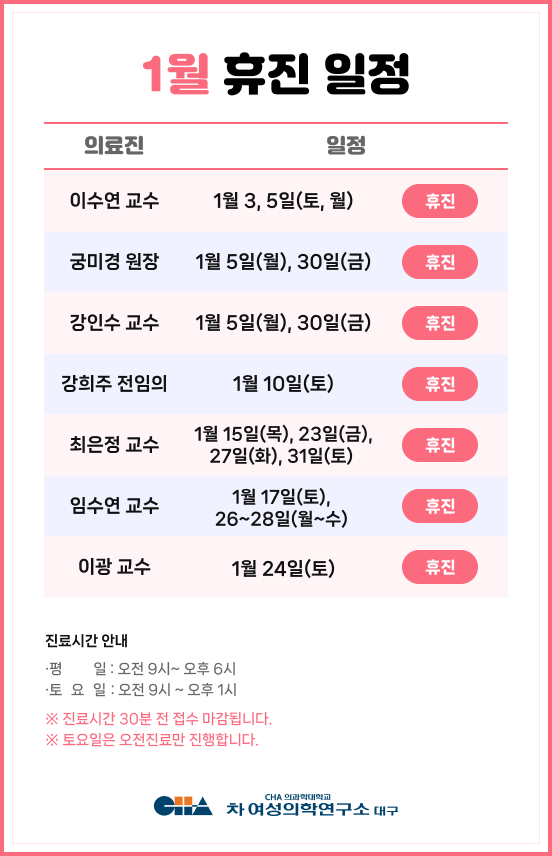 26년 1월 공휴일 진료 및 휴진 일정 안내